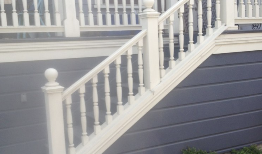 Elegant white porch stairs with traditional balusters
